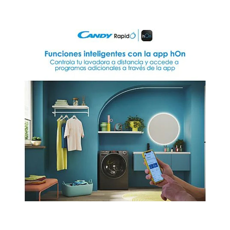 Destaca por su gama de ciclos rápidos (14', 30', 44') y programas de 59 minutos (Higiene Plus 59', Algodón Perfecto 59'). Gracias a la conectividad Wi-Fi y Bluetooth y la app hOn, es posible controlar la lavadora de forma remota y acceder a funciones adicionales como Smart Wash. El diseño es de fondo reducido (53 cm) en un elegante color Plata Oscuro (Antracita).