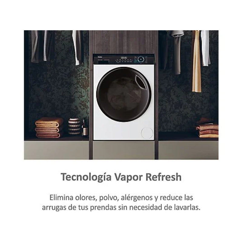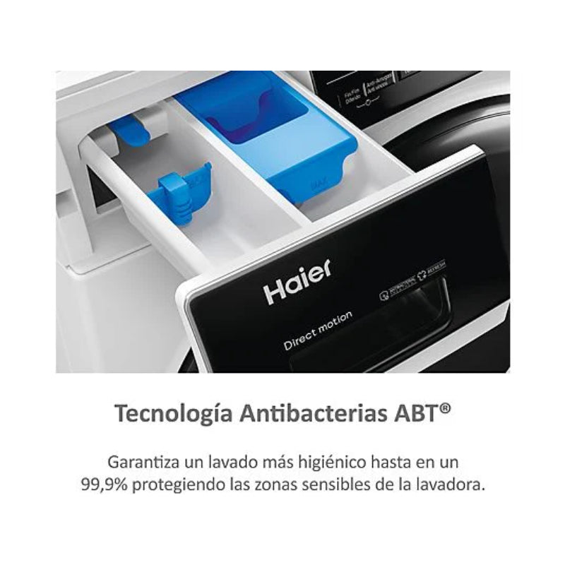 La Lavadora Secadora Haier HWD90-B14939-IB es un modelo de libre instalación con capacidad de 9 kg para lavar y 6 kg para secar. Su Motor Direct Motion Inverter (sin correa) garantiza un funcionamiento duradero, eficiente y con un nivel de ruido de 72 dB(A) en el centrifugado.
