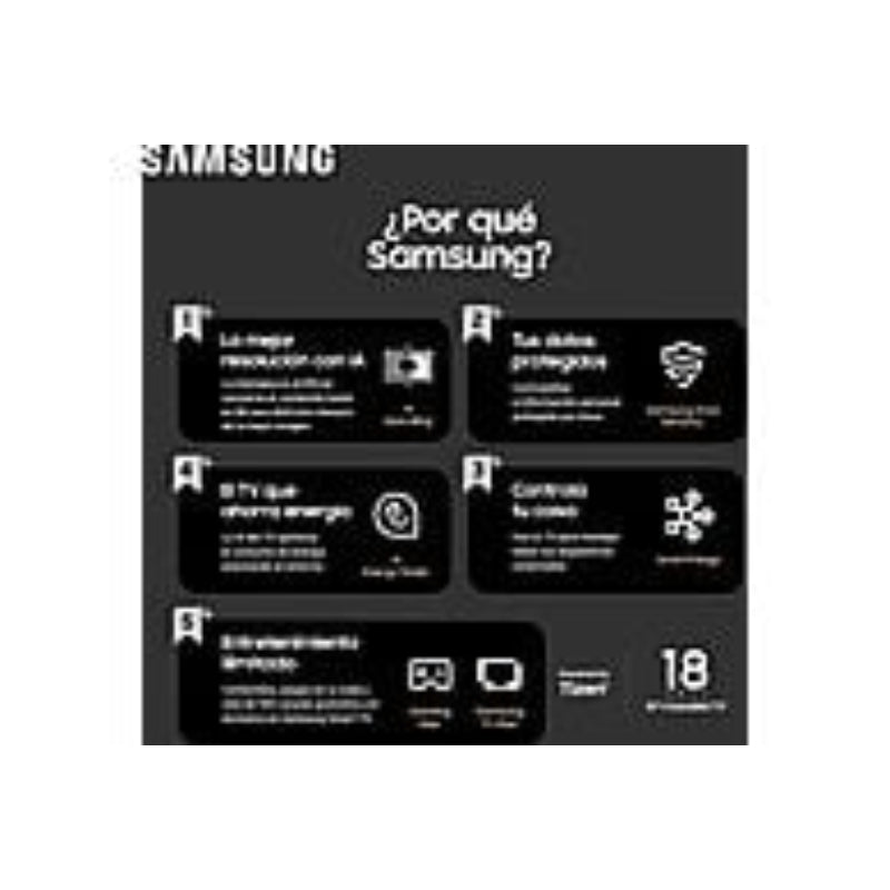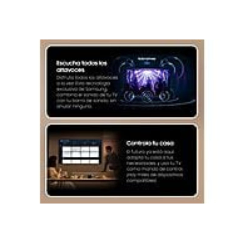 Utiliza el sistema operativo Smart TV Tizen, una interfaz fluida con acceso a todas las plataformas de streaming. Incluye el Samsung Gaming Hub para jugar en la nube sin consola. El sistema de audio de 20 W ofrece tecnologías avanzadas como OTS Lite (sonido que sigue la acción) y Q-Symphony (sincronización con barra de sonido). El televisor dispone de 3 puertos HDMI (4K 60Hz), 1 USB y conectividad Wi-Fi y Bluetooth.